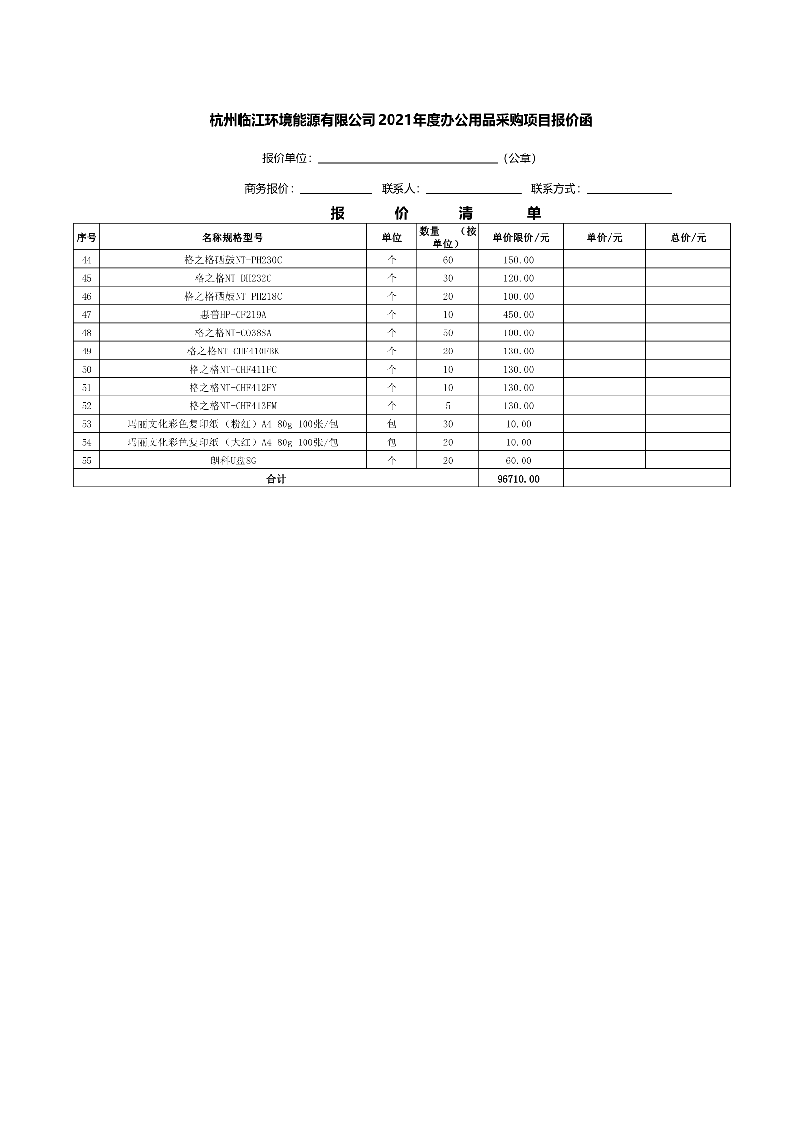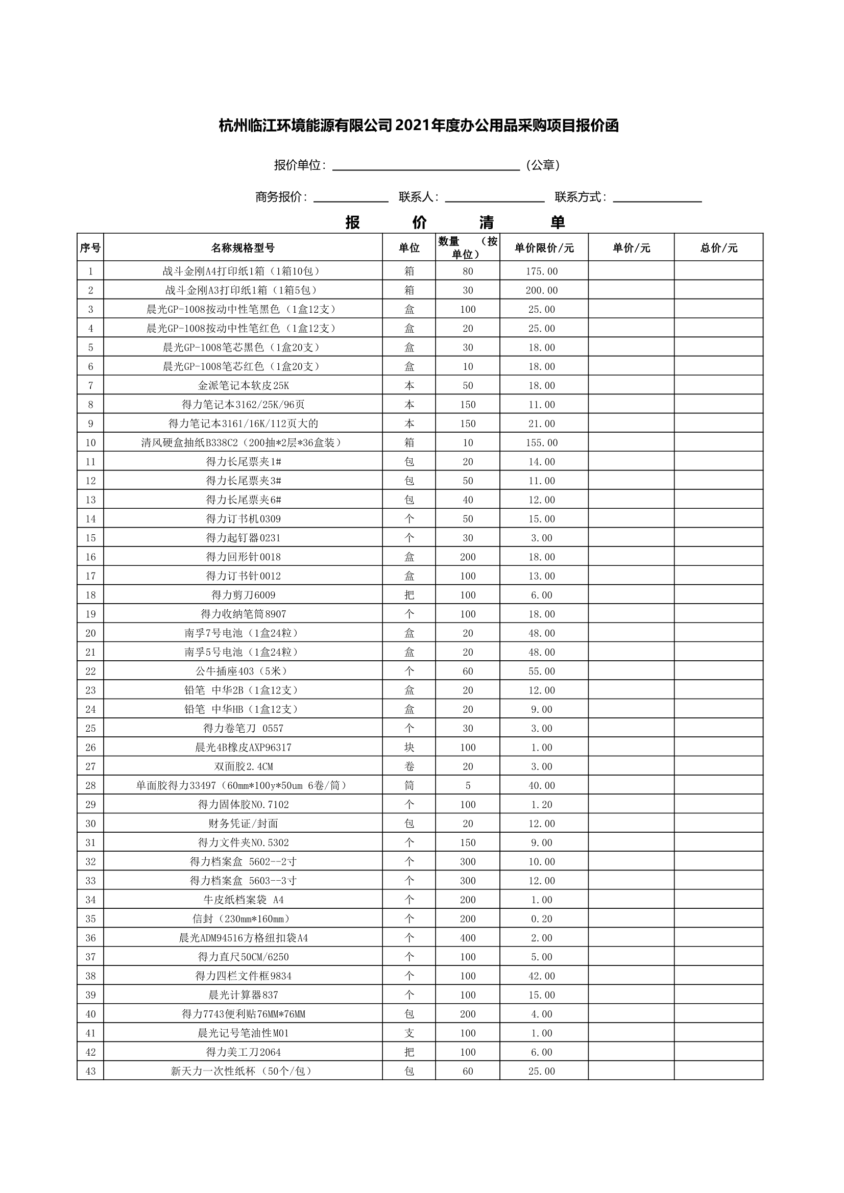 杭州臨江環(huán)境能源有限公司2021年度辦公用品采購項目報價函.xlsx