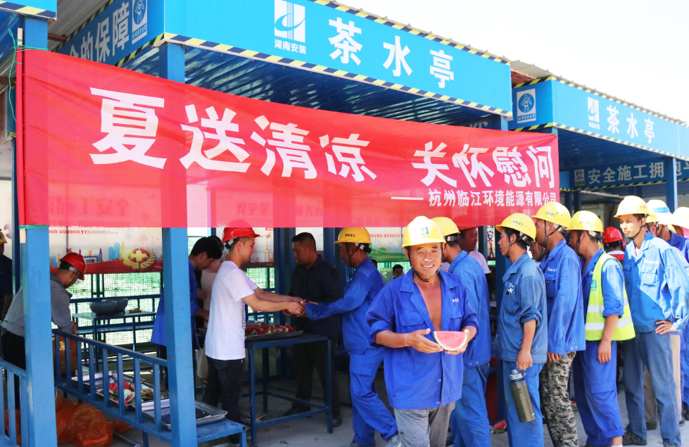 炎炎酷暑送清涼,滴滴關(guān)懷暖人心,7月24日下午,臨江公司在臨江環(huán)境能源項(xiàng)目施工現(xiàn)場(chǎng)組織開展“夏送清涼 關(guān)懷慰問(wèn)”活動(dòng),為一線工人送去夏令品。