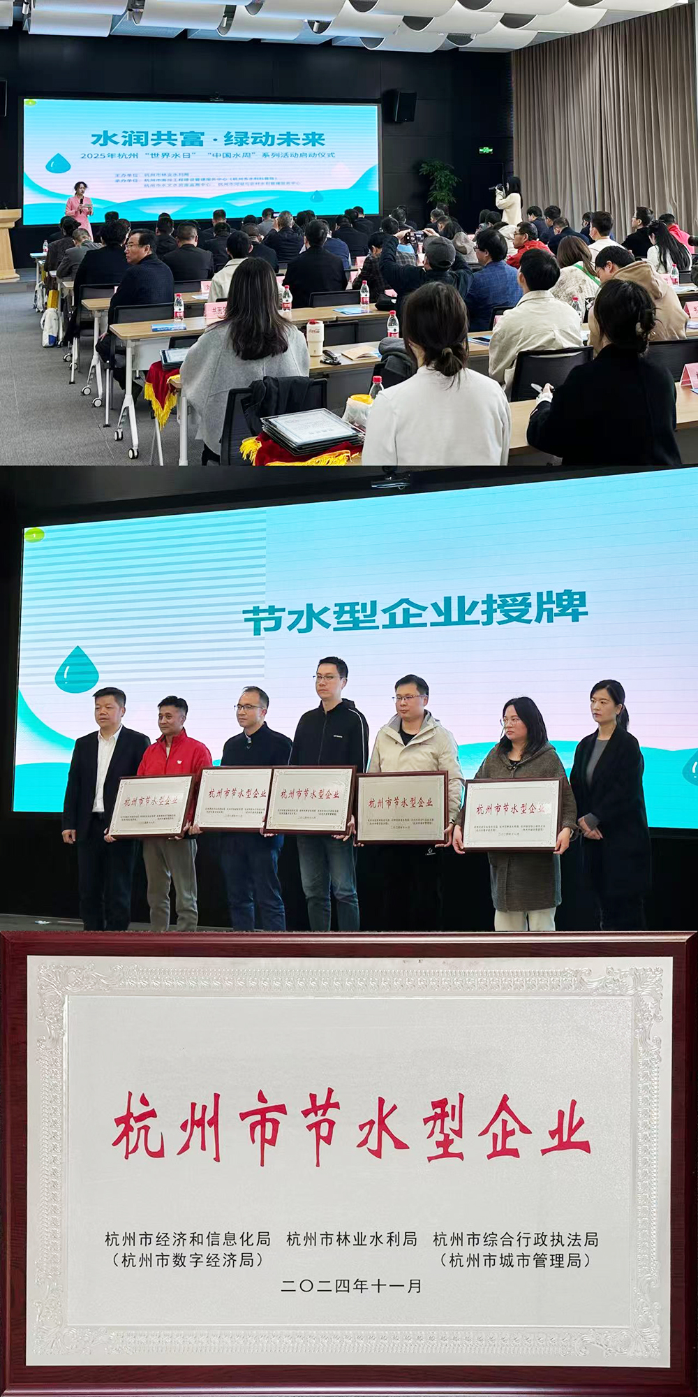 3月21日上午,由杭州市林業(yè)水利局主辦的2025年“世界水日”“中國(guó)水周”宣傳活動(dòng)在市南排工程建設(shè)管理服務(wù)中心(市水利科普館)隆重召開(kāi)。杭州臨江環(huán)境能源有限公司榮獲“杭州市節(jié)水型企業(yè)”,并作為“2024年杭州市十佳節(jié)水型企業(yè)”在此次活動(dòng)中上臺(tái)領(lǐng)獎(jiǎng)。