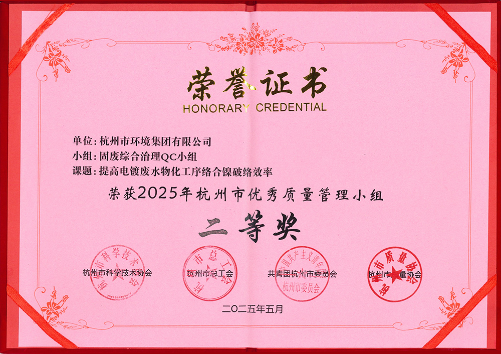 5月27日-30日,由杭州市科學(xué)技術(shù)協(xié)會(huì)、杭州市總工會(huì)、共青團(tuán)杭州市委員會(huì)和杭州市質(zhì)量協(xié)會(huì)聯(lián)合舉辦的2025年杭州市優(yōu)秀質(zhì)量管理小組成果發(fā)布會(huì)評(píng)比活動(dòng)在千島湖舉行,臨江公司固廢綜合治理QC小組成果《提高電鍍廢水物化工序絡(luò)合鎳破絡(luò)率》通過現(xiàn)場路演、專題匯報(bào)、專家評(píng)審答辯在近400個(gè)課題組脫穎而出,榮獲2025年杭州市優(yōu)秀質(zhì)量管理小組二等獎(jiǎng)。